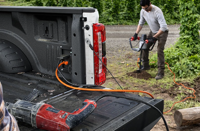 These options all pair with an available 2kW Pro Power Onboard system (shown on the right), which serves as a mobile generator and ably allows drivers to utilize commercial equipment - including circular saws, air compressors, or even mixers.