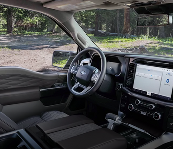 Offered on the new F-150 is the Platinum Plus Package. Leather-appointed seating boasts quilted textures, promising a more comfortable ride. The instrument panel is wrapped in supple materials, while genuine woodgrain accents add a classic touch. The tray-style floor liners provide improved protection against dirt and debris, and an exclusive twin-panel moonroof floods the cabin with natural light. To complete the suite custom badging is provided, creating a striking contrast to the cabin’s soft greys and blacks.