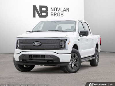 Now available at Novlan Bros is the 2025 Ford F-150 Lightning. Clad in Oxford White panels, this all-electric ride delivers a striking profile. The front boasts a bold black grille, framed by LED projector headlamps; while fixed running boards line the sides. The 20-inch aluminum wheels feature a carbonized gray finish, and BSW tires add a sporty touch. Inside drivers will be further impressed by the slate-coloured ActiveX materials and sleek 12-inch digital IP cluster.