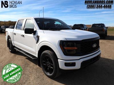 Available at Novlan Bros is the 2024 F-150 STX. Equipped with a 2.7 V6 engine, this 4x4 promises impressive power in Saskatchewan - earning up to 325 HP and 400 lb.-ft of torque. Progressive Range Select technology bolsters the 10-speed automatic transmission, while a two-stage variable rate suspension at the rear assures nimble handling on rough terrain. Integrated trailer sway control pairs with AdvanceTrac tech, and the fully-boxed steel frame assures superior durability when faced with cargo demands.