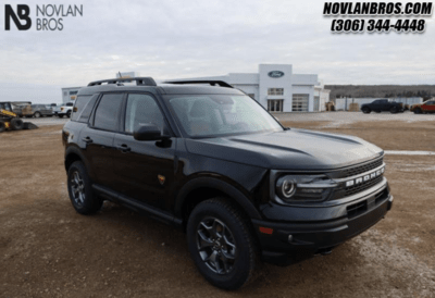The 2024 Ford Bronco Sport Badlands - which is now available at Novlan Bros for $54,305 - offers a series of premium features to Lloydminster drivers. Leather seats deliver lumbar support and integrated heating technology, while a sunroof floods the cabin with light. A wireless charger accommodates all power needs, keeping devices at full battery capacity; and a 10-speaker Bang and Olufsen audio system pairs with HD Radio to ensure superior sound. Dual-zone automatic temperature controls further improve each adventure, providing riders with maximum comfort (no matter what the season).