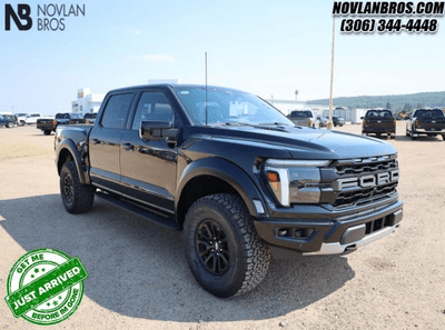 The 2024 Ford F-150 Raptor promises all-terrain performance in Saskatchewan. Available at Novlan Bros, this Crew Cab boasts a rugged 3.5L V6 EcoBoost engine - delivering up to 450 HP and 510 lb.-ft of torque. A 10-speed automatic transmission pairs with Selectable Drive Modes (including the exclusive Mud/Rut feature) to seamlessly adapt to new conditions, while a 4x4 frame is anchored by an independent front suspension and power rack-and-pinion steering. Dominate the backroads in the class-leading pick-up.