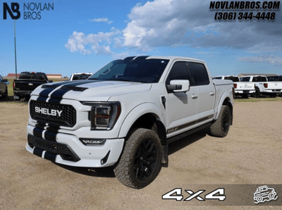Available at Novlan Bros is the 2023 Ford F-150 Shelby. Peek beneath the hood (if you dare) and discover a 775 HP supercharged V8, complemented by an aluminum heat exchanger and a 10-speed automatic transmission. A custom-tuned dual-tipped exhaust sits at the rear, while an exclusive off-road package delivers 20-inch PVD wheels, BSW tires, and an electronic locking axle. This 4x4 - which boasts only 15,249-km - is ready to thrill.