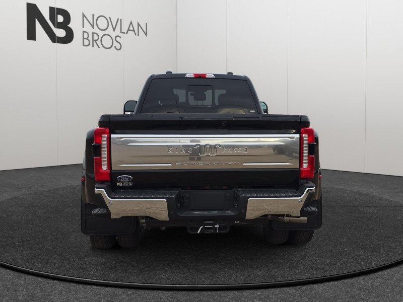 Our F-450 Super Duty's trim level is King Ranch. The King Ranch delivers an even more luxurious experience, with power running boards, adaptive cruise control, a driver's heads-up display and retractable rear steps, along with King-Ranch leather-trimmed heated and ventilated front seats with power adjustment, memory function and lumbar support, a heated leather-wrapped steering wheel, voice-activated dual-zone automatic climate control, power-adjustable pedals, a sonorous 18-speaker Bang & Olufsen audio system, and two 120-volt AC power outlets. This truck is also ready to get busy, with equipment such as class V towing equipment with a hitch, trailer wiring harness, a brake controller and trailer sway control, beefy suspension with heavy duty shock absorbers, power extendable trailer style mirrors, up-fitter switches, and LED headlights with front fog lamps and automatic high beams. Connectivity is handled by a 12-inch infotainment screen powered by SYNC 4, bundled with Apple CarPlay, Android Auto, inbuilt navigation, and SiriusXM satellite radio. Safety features also include lane keeping assist with lane departure warning, a surround camera system, pre-collision assist with automatic emergency braking and cross-traffic alert, blind spot detection, rear parking sensors, forward collision mitigation, and a cargo bed camera. This vehicle has been upgraded with the following features: Moonroof, Premium Audio, Fx4 Off-road Package, Reverse Sensing System, Leather 40/console/40 Seat, Spray-in Bedliner.