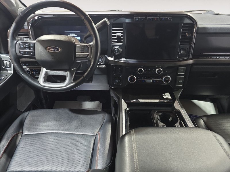 Our F-350 Super Duty's trim level is Lariat. Experience rugged capability and luxury in this F-350 Lariat trim, which features leather-trimmed heated and ventilated front seats with power adjustment, memory function and lumbar support, a heated leather-wrapped steering wheel, voice-activated dual-zone automatic climate control, power-adjustable pedals, a sonorous 8-speaker Bang & Olufsen audio system, and two 120-volt AC power outlets. This truck is also ready to get busy, with equipment such as class V towing equipment with a hitch, trailer wiring harness, a brake controller and trailer sway control, beefy suspension with heavy duty shock absorbers, power extendable trailer style mirrors, and LED headlights with front fog lamps and automatic high beams. Connectivity is handled by a 12-inch infotainment screen powered by SYNC 4, bundled with Apple CarPlay, Android Auto, inbuilt navigation, and SiriusXM satellite radio. Safety features also include Ford Co-Pilot360 with a surround camera and pre-collision assist with automatic emergency braking and cross-traffic alert, blind spot detection, rear parking sensors, forward collision mitigation, and a cargo bed camera. This vehicle has been upgraded with the following features: Diesel Engine, Heated Seats, Sunroof, Navigation, Leather Interior, Alloy Wheels, Remote Engine Start.
