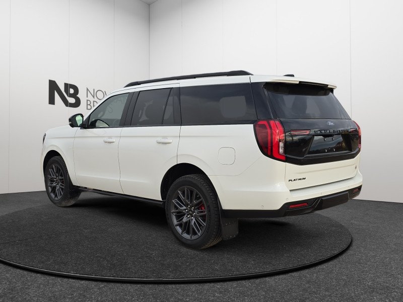 Our Expedition's trim level is Platinum. This Expedition Platinum steps things up with adaptive suspension and polished aluminum wheels, along with comfort and entertainment features such as power running boards, ventilated and heated front captain's chairs with leather upholster, power adjustment, lumbar support and memory function, a heated leather steering wheel with auto tilt away, genuine wood and metal interior trim, a premium 10-speaker Bang & Olufsen audio system, power adjustable pedals, proximity keyless entry with remote start, and an infotainment screen powered by SYNC 4A, bundled with wireless Apple CarPlay and Android Auto, inbuilt navigation, mobile internet hotspot access, and SiriusXM streaming radio. You and yours are kept safe on the road thanks to adaptive cruise control, blind spot monitoring, pre-collision alert and automatic emergency braking, lane keeping assist with lane departure warning, front and rear parking sensors, front and rear collision mitigation, and an aerial view camera system. Additional features include an express open/close sunroof with a power sunshade, a power tailgate for rear cargo access, LED lights with automatic high beams, dual-zone climate control with separate rear controls, four 12-volt DC and 120-volt AC power outlets, and even more. This vehicle has been upgraded with the following features: High Output 3.5l Ecoboost.