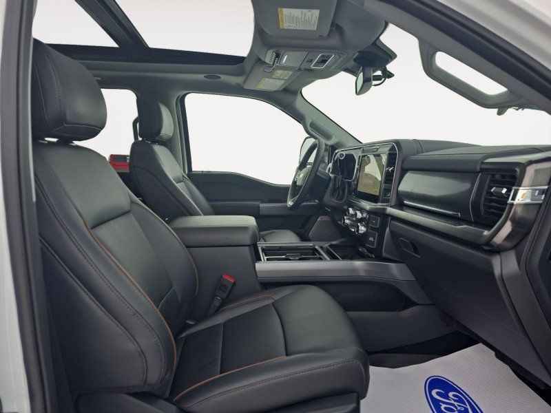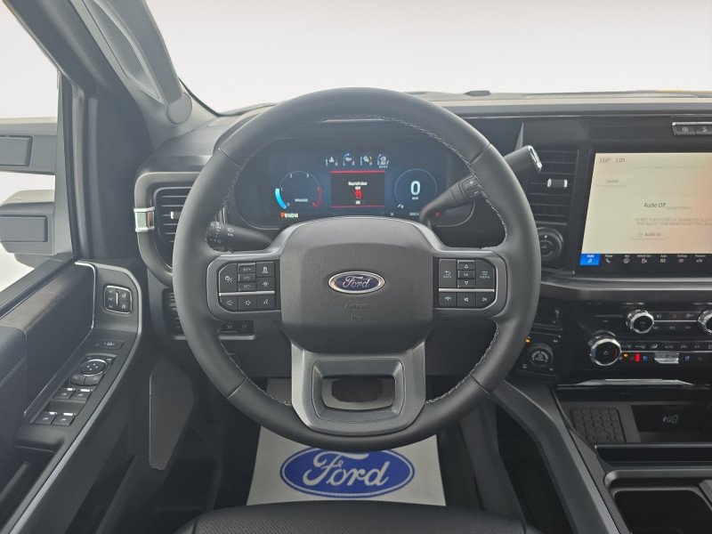 Our F-350 Super Duty's trim level is Lariat. Experience rugged capability and luxury in this F-350 Lariat trim, which features leather-trimmed heated and ventilated front seats with power adjustment, memory function and lumbar support, a heated leather-wrapped steering wheel, voice-activated dual-zone automatic climate control, power-adjustable pedals, a sonorous 8-speaker Bang & Olufsen audio system, and two 120-volt AC power outlets. This truck is also ready to get busy, with equipment such as class V towing equipment with a hitch, trailer wiring harness, a brake controller and trailer sway control, beefy suspension with heavy duty shock absorbers, power extendable trailer style mirrors, and LED headlights with front fog lamps and automatic high beams. Connectivity is handled by a 12-inch infotainment screen powered by SYNC 4, bundled with Apple CarPlay, Android Auto, inbuilt navigation, and SiriusXM satellite radio. Safety features also include a surround camera system, pre-collision assist with automatic emergency braking and cross-traffic alert, blind spot detection, rear parking sensors, forward collision mitigation, and a cargo bed camera. This vehicle has been upgraded with the following features: Tremor Off-Road Package, Lariat Ultimate Package, Black Appearance Package.