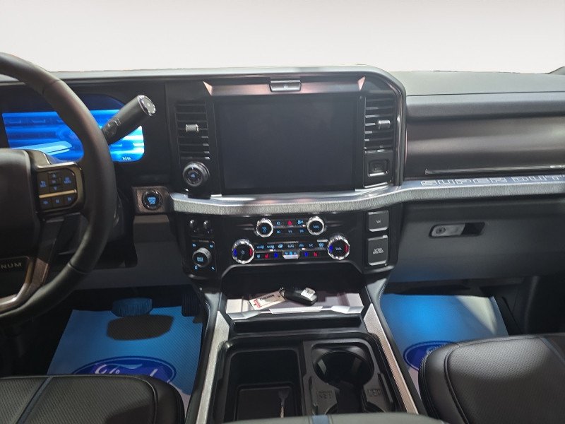 Our F-350 Super Duty's trim level is Platinum. This F-350 Platinum is embellished with chrome exterior accents and unique exterior styling, with power running boards, adaptive cruise control, a driver's heads-up display and retractable rear steps, along with Platinum-themed leather-trimmed heated and ventilated front seats with power adjustment, memory function and lumbar support, a heated leather-wrapped steering wheel, voice-activated dual-zone automatic climate control, power-adjustable pedals, a sonorous 8-speaker Bang & Olufsen audio system, and two 120-volt AC power outlets. This truck is also ready to get busy, with equipment such as class V towing equipment with a hitch, trailer wiring harness, a brake controller and trailer sway control, beefy suspension with heavy duty shock absorbers, power extendable trailer style mirrors, up-fitter switches, and LED headlights with front fog lamps and automatic high beams. Connectivity is handled by a 12-inch infotainment screen powered by SYNC 4, bundled with Apple CarPlay, Android Auto, inbuilt navigation, and SiriusXM satellite radio. Safety features also include lane keeping assist with lane departure warning, a surround camera system, pre-collision assist with automatic emergency braking and cross-traffic alert, blind spot detection, rear parking sensors, forward collision mitigation, and a cargo bed camera. This vehicle has been upgraded with the following features: Premium Audio, Diesel Engine, POWER RUNNING BOARD, Leather 40/Console/40 Seat, 5th Wheel/Gooseneck Hitch Prep Package, Spray-in Bedliner.