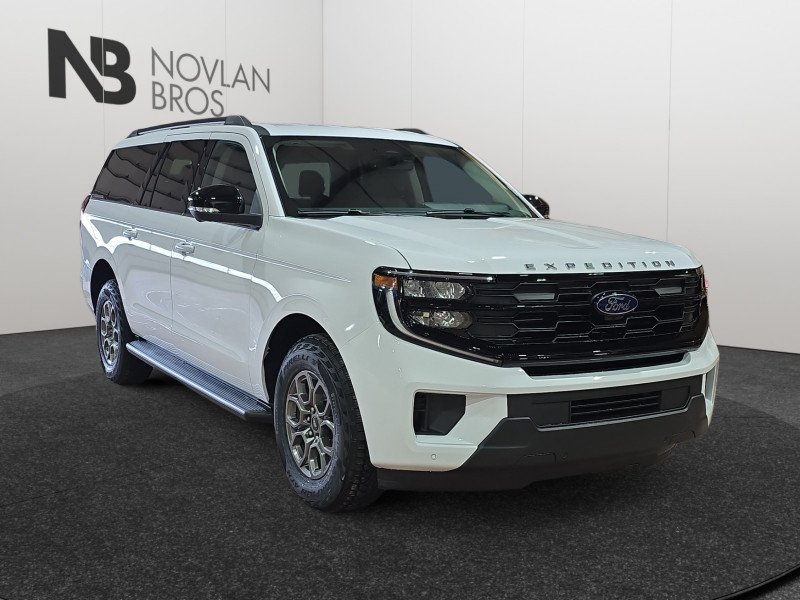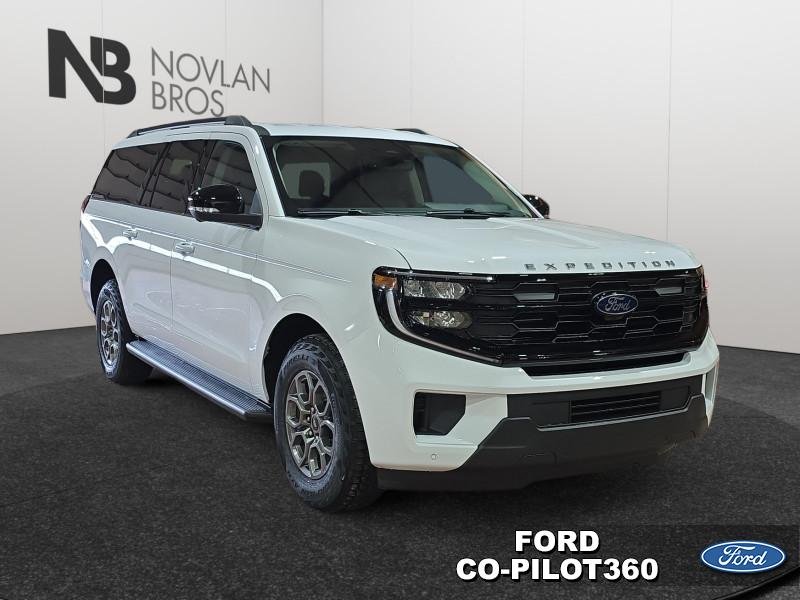 Our Expedition's trim level is Active Max. This full-size SUV blends impressive towing capability and advanced trailer assist features with luxurious comfort for up to eight passengers, featuring power-folding third-row seats, tri-zone climate control, heated and ventilated front captain’s chairs, a heated leather-wrapped steering wheel, and ambient interior lighting. Its connected cabin offers SYNC with Google integration, Apple CarPlay, Android Auto, wireless charging, and a premium sound system to enhance every drive. Safety is elevated with adaptive cruise control, lane-keeping assist, blind-spot monitoring, pre-collision assist, a 360° camera system, and reverse brake assist for confident handling on every journey. This vehicle has been upgraded with the following features: Aluminum Wheels, Ford Co-Pilot360 Assist +.