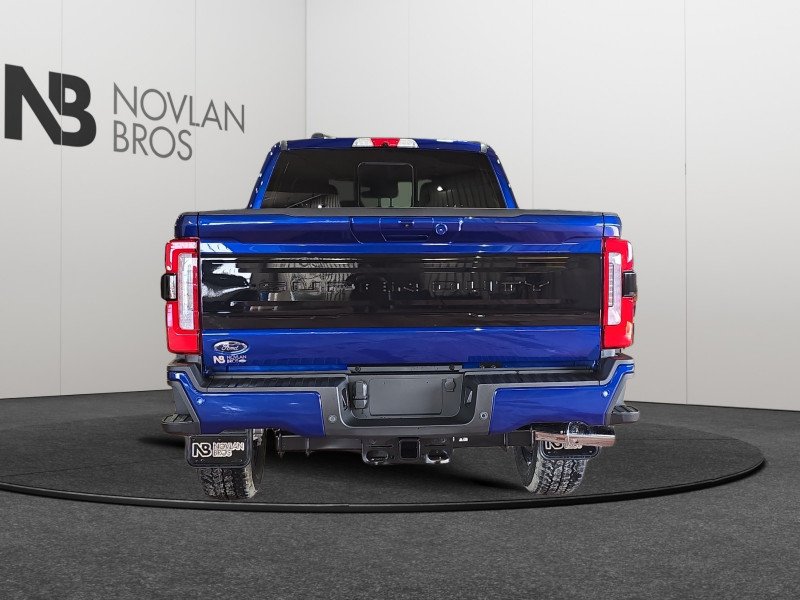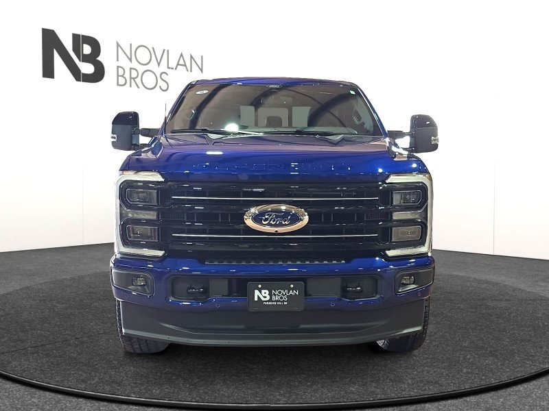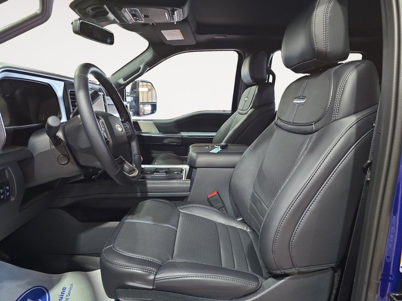 Our F-350 Super Duty's trim level is Platinum. This F-350 Platinum is embellished with chrome exterior accents and unique exterior styling, with power running boards, adaptive cruise control, a driver's heads-up display and retractable rear steps, along with Platinum-themed leather-trimmed heated and ventilated front seats with power adjustment, memory function and lumbar support, a heated leather-wrapped steering wheel, voice-activated dual-zone automatic climate control, power-adjustable pedals, a sonorous 8-speaker Bang & Olufsen audio system, and two 120-volt AC power outlets. This truck is also ready to get busy, with equipment such as class V towing equipment with a hitch, trailer wiring harness, a brake controller and trailer sway control, beefy suspension with heavy duty shock absorbers, power extendable trailer style mirrors, up-fitter switches, and LED headlights with front fog lamps and automatic high beams. Connectivity is handled by a 12-inch infotainment screen powered by SYNC 4, bundled with Apple CarPlay, Android Auto, inbuilt navigation, and SiriusXM satellite radio. Safety features also include lane keeping assist with lane departure warning, a surround camera system, pre-collision assist with automatic emergency braking and cross-traffic alert, blind spot detection, rear parking sensors, forward collision mitigation, and a cargo bed camera. This vehicle has been upgraded with the following features: Premium Audio, Diesel Engine, POWER RUNNING BOARD, Leather 40/Console/40 Seat, 5th Wheel/Gooseneck Hitch Prep Package, Spray-in Bedliner.